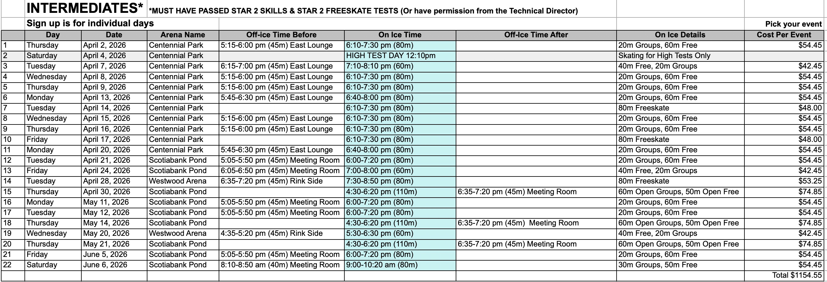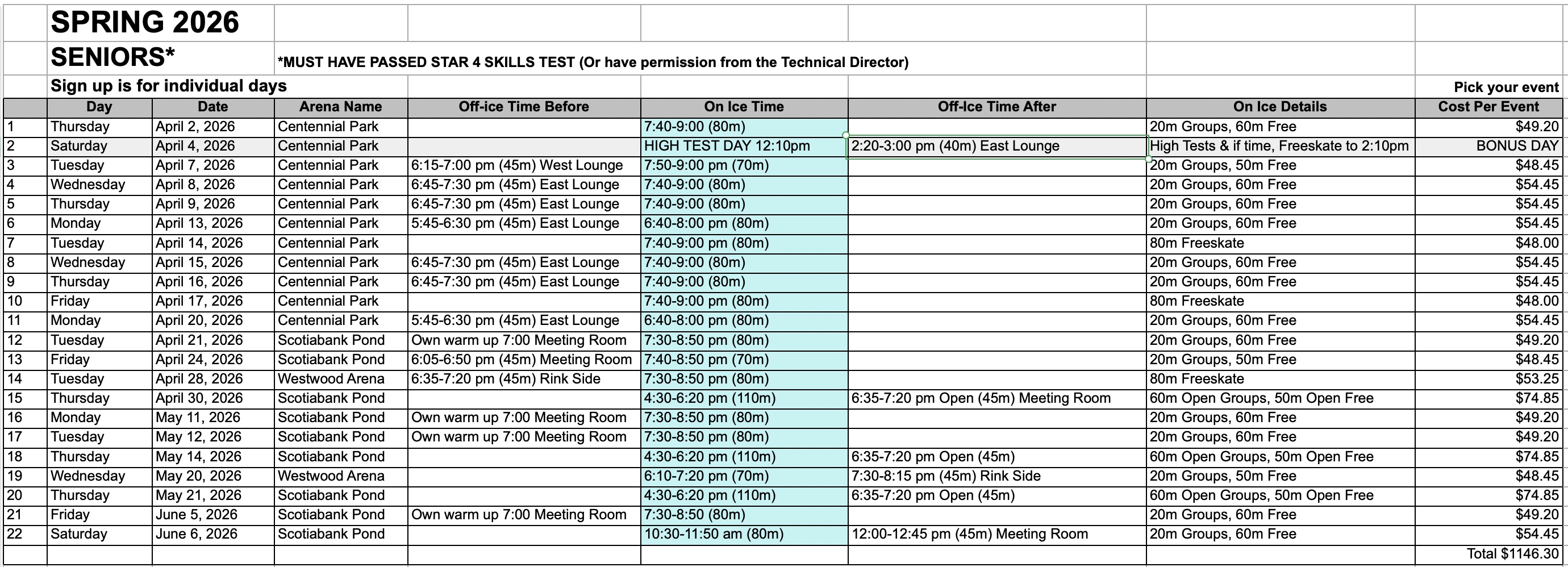 - April 4th is a High Test Day and a Bonus Skating Day for: Pre-Can Skate, CanSkate, Adult CanSkate, Pre-Junior, Junior and Adult/Teen STAR sessions on their normal winter Saturday schedule.